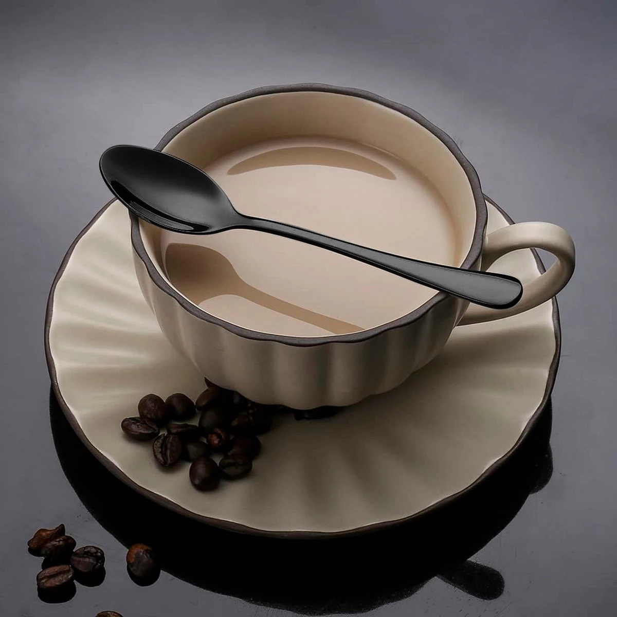 Alheco 6 Ovale Theelepels – 12.3cm – RVS Theelepeltjes – Zwart