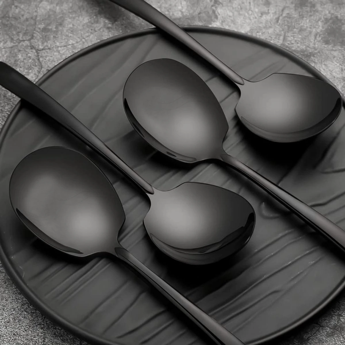 House Of Husk® Opscheplepel Set – Zwart – Serveerlepel – Groetelepel – Aardappellepel – 21cm – RVS – 4 Stuks