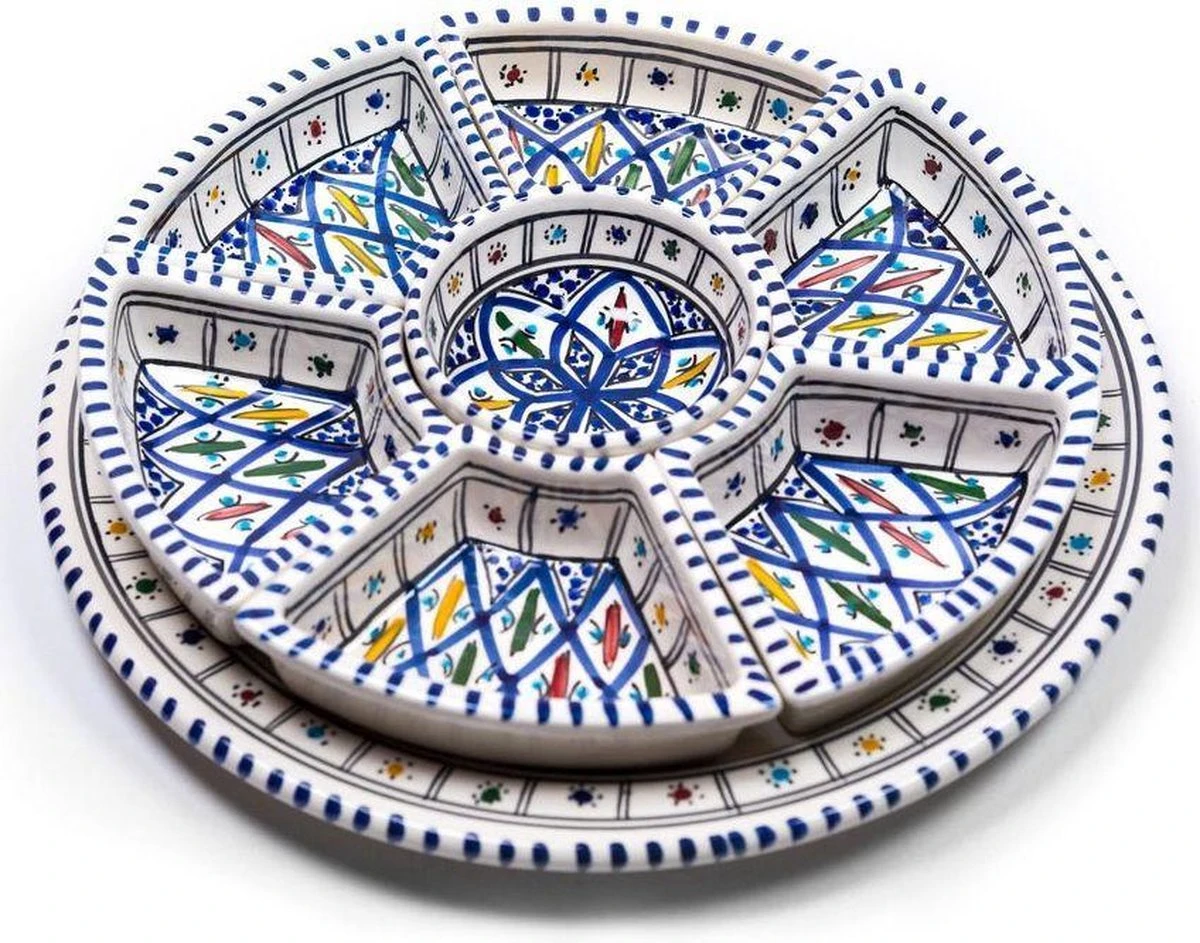 Creëer een verbluffende hapjes presentatie tijdens een gezellige bijeenkomst met deze Marokkaanse handgemaakte serveer set.