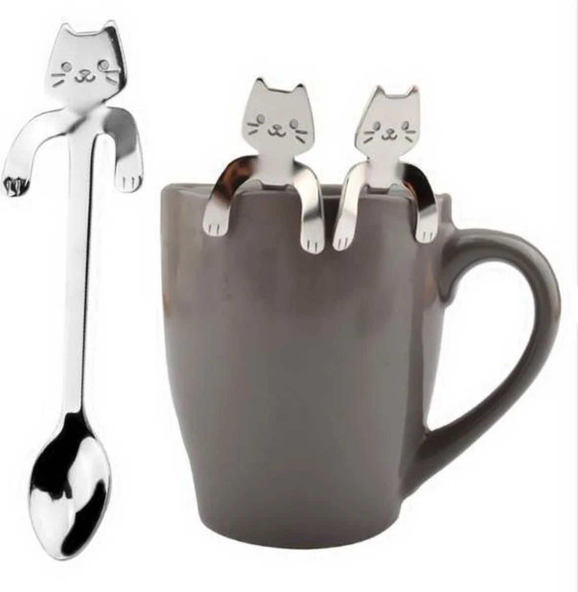 Merkloos LeuksteWinkeltje Hangende Kat Theelepel – RVS – Zilverkleurig