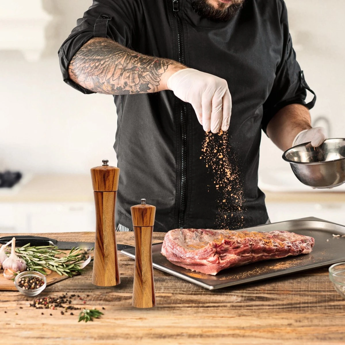 Deze luxe peper en zoutmolen zijn gemaakt van Acacia hout peper en worden handmatig geproduceerd volgens hoge standaard. Dit kunt u herkennen aan de verwerking van RVS in combinatie met het diep donkere hout. Deze molens zijn voorzien van keramische maalschijven die langdurig mee gaan, zodat u alle specerijen optimaal kunt vermalen en dat u er jaren lang plezier van zult hebben. Uw gasten zullen met gemak deze molen kunnen bedienen en er zal geen residu achterblijven zodat het “grinden” soepel blijft.