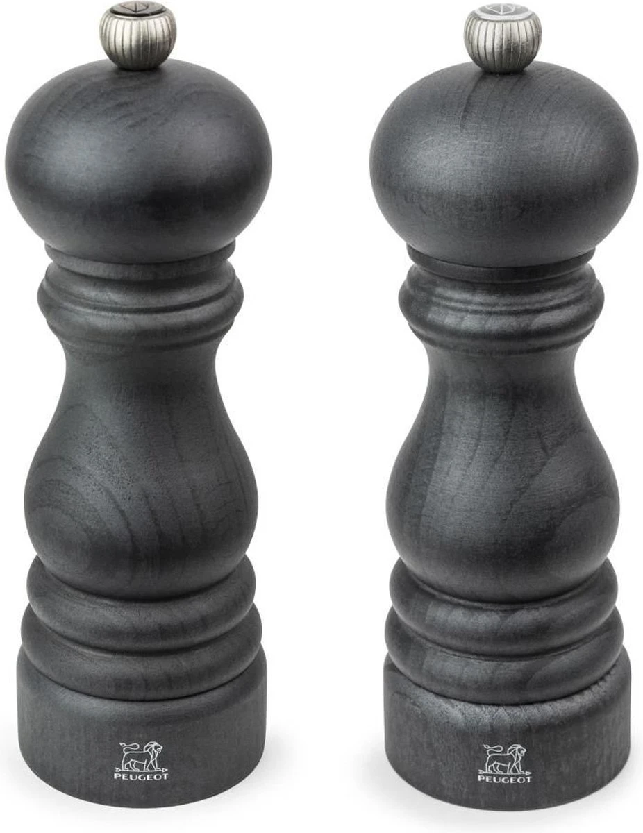 Deze geschenkset bevat een Peugeot peper- en zoutmolen ‘Graphite’ samen verpakt in een mooie geschenkdoos. De Peugeot molen ‘Paris Graphite’ is uitgevoerd in een trendy antracietgrijze tint. De licht gemetalliseerde afwerking symboliseert de versmelting van hout en staal en benadrukt de nerven van het hout op een bijzondere manier. Het hout waaruit de molen is gemaakt is afkomstig uit bossen met het PEFC label en gelakt met wateroplosbare verf en vernis. De grofheid van de maling stel je eenvoudig in door het knopje bovenop de molen te verdraaien. De molens zijn uiteraard voorzien van het unieke Peugeot maalwerk. Peugeot heeft voor iedere specerij een eigen maalwerk, dat het beste uit de specerij haalt. Op het functioneren van het maalwerk geldt maar liefst levenslange garantie. De molens worden compleet geleverd met peper- resp. zoutkorrels.