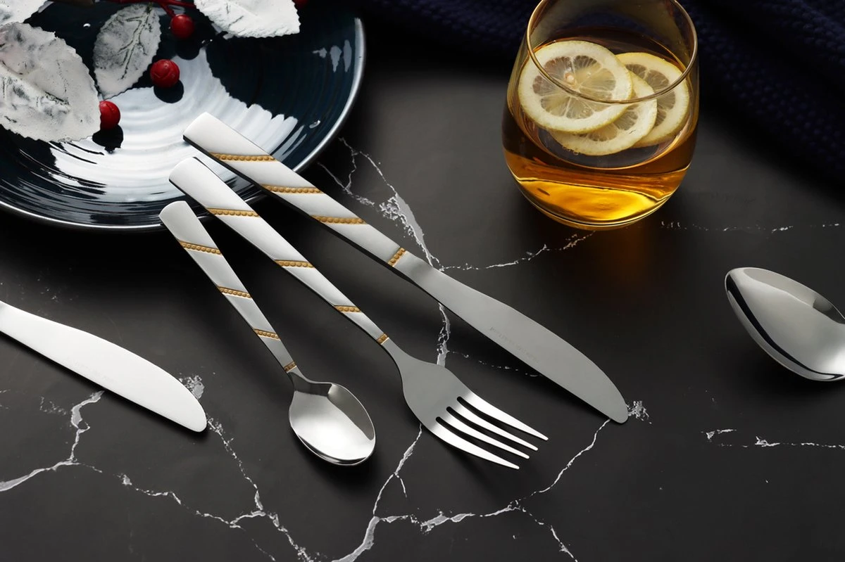Swiss Pro+ Bestekset In Koffer-72 Delig-12 Persoons-Zwitsers Kwaliteit-Complete Set-100% Roestvrijstaal-Modern Gold