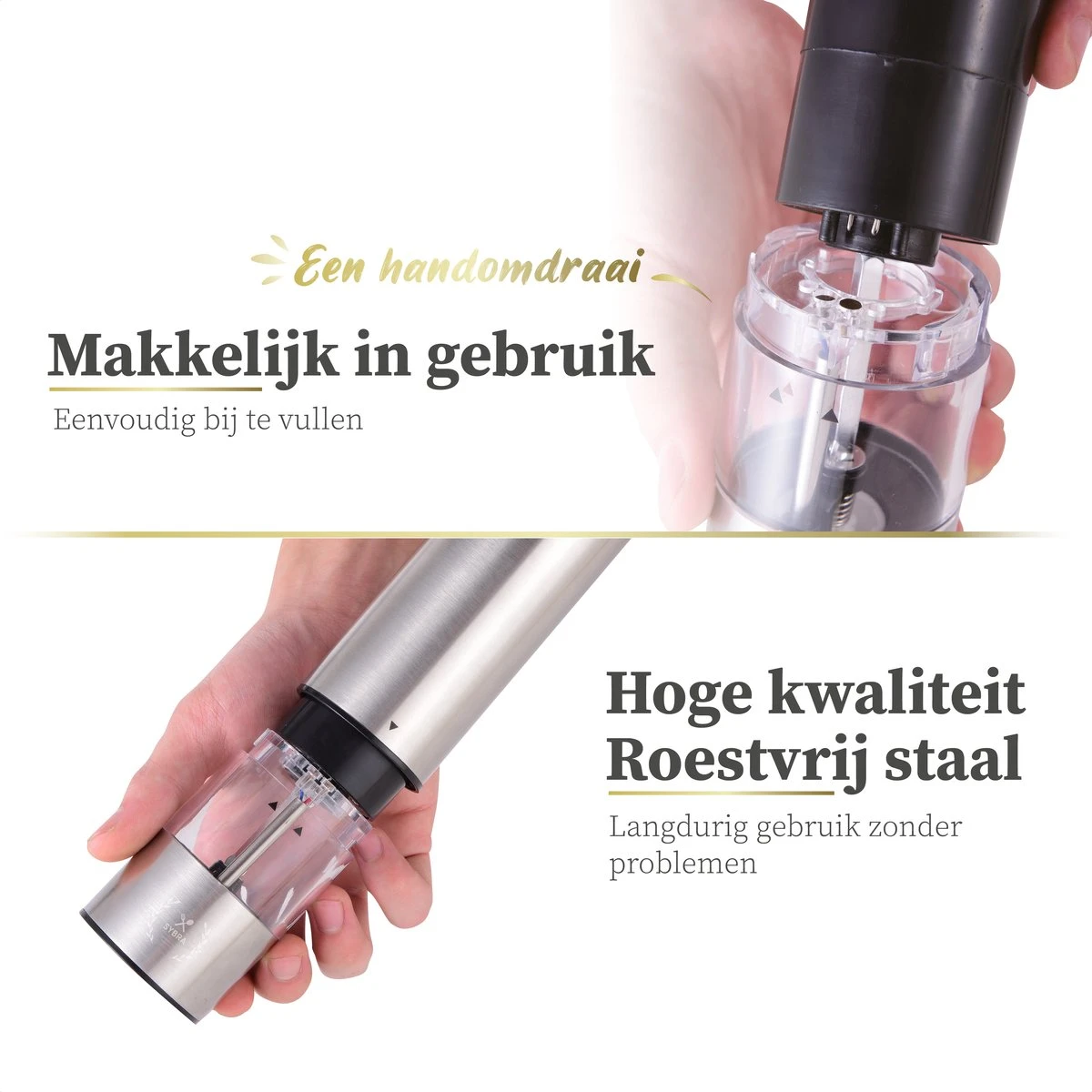 Sybra Peper En Zoutmolen Elektrisch – Peper En Zoutmolen Set Elektrisch – Pepermolen En Zoutmolen – Hoogwaardig RVS – Inclusief Houder